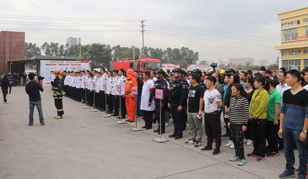 公明街道辦事處黨工委副書記伏守杰同志,公明街道各辦公室、各中心、公明派出所、消防中隊(duì)、交警中隊(duì)代表,下轄六大社區(qū)消防民警和社區(qū)民警,寶田醫(yī)院救護(hù)人員,消安辦全體消巡員,安監(jiān)辦全體外勤人員,工業(yè)園企業(yè)代表等,共1000多人參加。