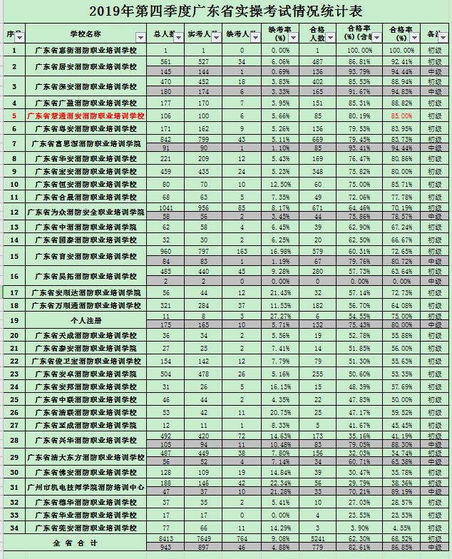喜訊:我校學(xué)員在2019年第四季度廣東省初級(jí)實(shí)操考試中,通過率在全省33個(gè)學(xué)校中,深圳區(qū)域排第二名,全省排第五名。